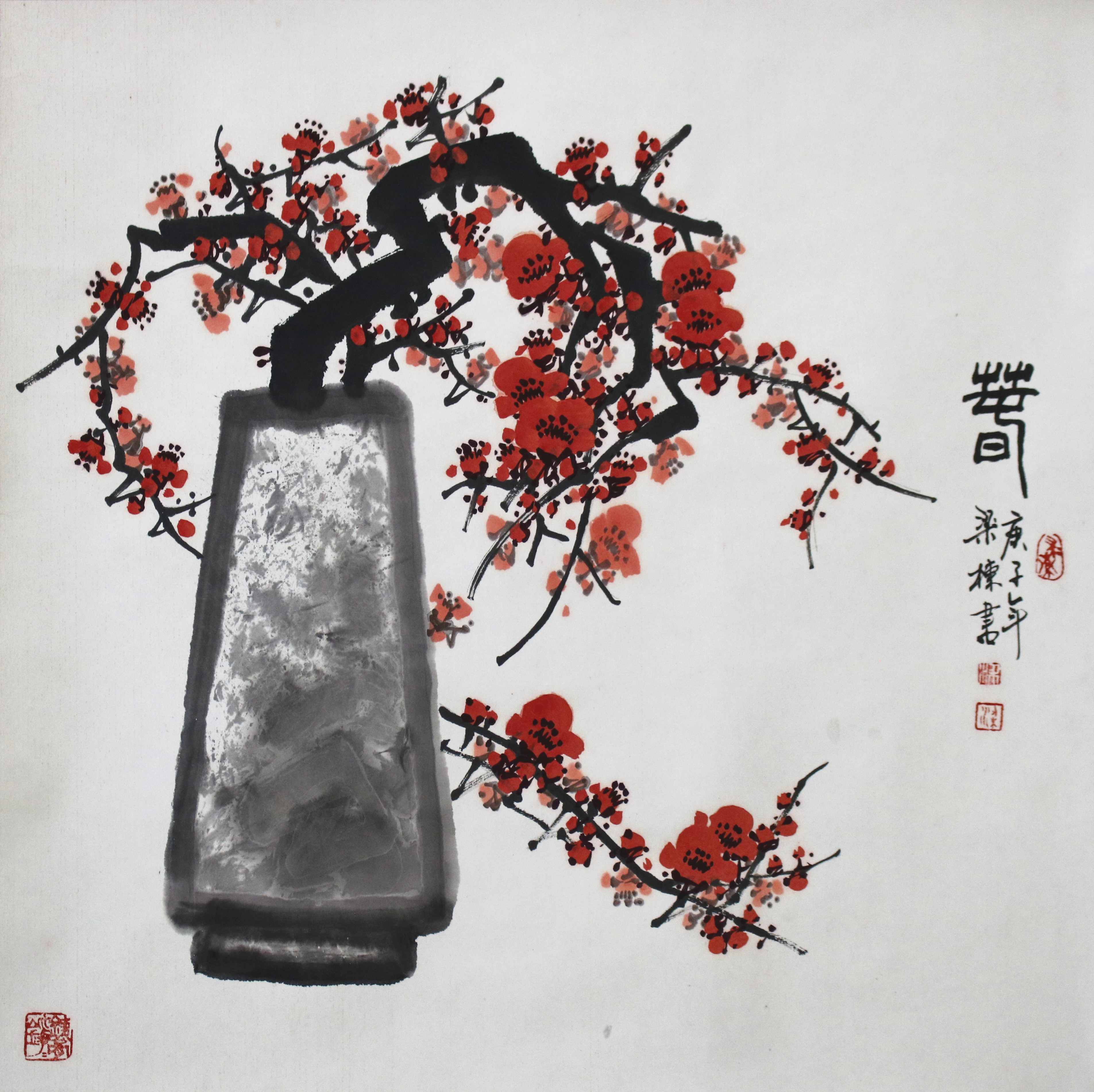 美術創作專注中國畫,主攻梅花與山水題材,風格溫潤質樸、兼具傳統底蘊與個人特色,每幅作品藏生活感悟與藝術敬畏。梅花創作源于童年初心,高中偶然得畫冊中梅花圖一見傾心,加之連環畫《古人勤學故事》中王冕畫梅典故插圖,讓他對梅花情有獨鐘,這份熱愛堅守數十年。為學好畫梅,研究劉世儒、金農等古代名家,揣摩吳昌碩、關山月、李苦禪、董壽平等近現代大家技法,尤為推崇當代名家王成喜作品,購系列畫冊從花頭臨摹入手,鉆研花頭形態色彩、枝干穿插姿態,反復練習精益求精。深知畫梅需形神兼備,除臨摹理論學習,常走進自然寫生,觀察不同時節梅花姿態,感受其堅韌品格,融入創作力求傳神。多年打磨下,《春》《傲雪迎春》等系列作品問世,梅花或含苞雅致、或綻放凜然,筆墨細膩有力、色彩淡雅意蘊長,既展自然之美,又傳向上力量,獲廣泛認可。?