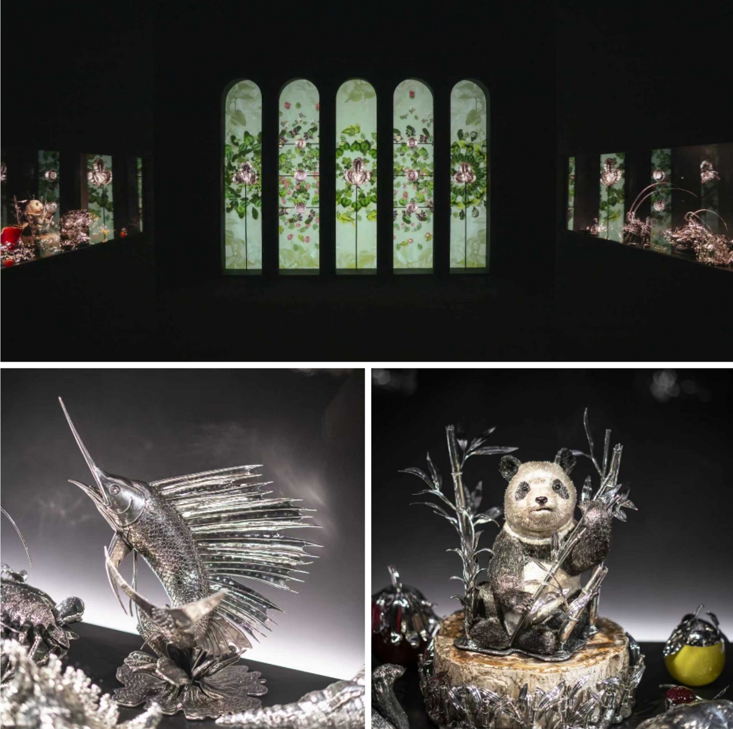 步入“自然秘境”展廳,展廳中以動態投影技術再現文藝復興時期植物插畫和畫作,精致的餐桌中央擺件、碗具以及各式尺寸精巧的器皿擺件,生動演繹布契拉提雋永優雅的餐桌藝術。“綠野尋蹤”和“幽海探秘”兩個主題空間的銀器杰作則栩栩再現林間與海底生靈的靈動姿態。布契拉提與意大利品牌Venini和Ginori 1735聯袂打造的精妙作品亦陳列于此。徜徉于“匠藝之界”沉浸式廊道,從弓鋸、雕刻刀、銼刀到“ad ascia”棉線,可探索布契拉提精湛工藝的奧妙。