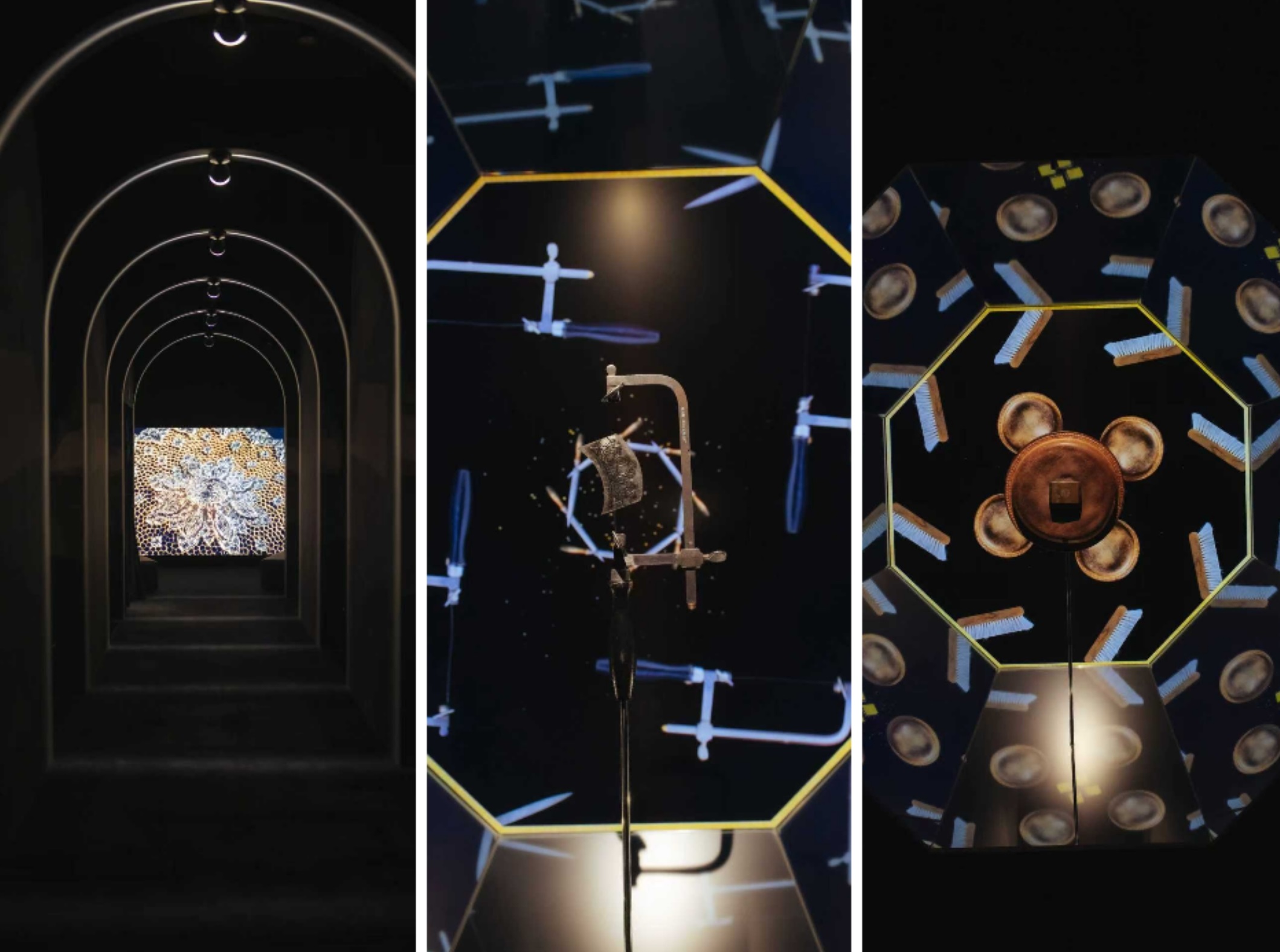 延續至“工藝臻境”展廳,三個主題空間依次展開,探尋布契拉提的藝術靈感之源。第一主題空間“閃耀非凡時刻”悉心陳列精美的古董晚宴手袋、匣式手拿包,與品牌第三代傳承人Andrea Buccellati設計的全新珠寶晚宴手袋;第二主題空間“禮贊比例美學”則致敬金工匠藝與建筑美學的深厚淵源;第三主題空間“追溯經典傳奇”則通過Mario和Gianmaria Buccellati創作的Boscoreale系列銀器杯作,呈現對考古學與古典藝術的深切致意。