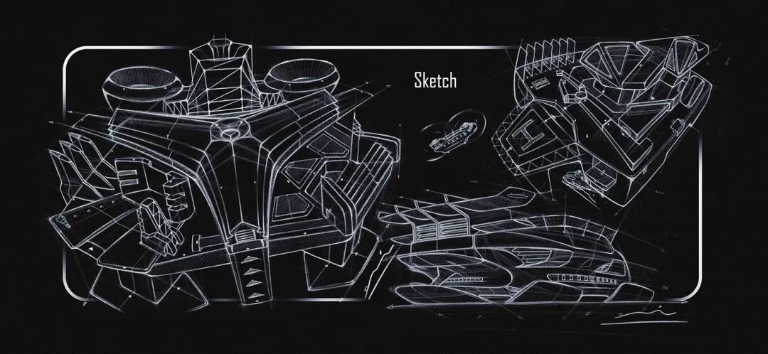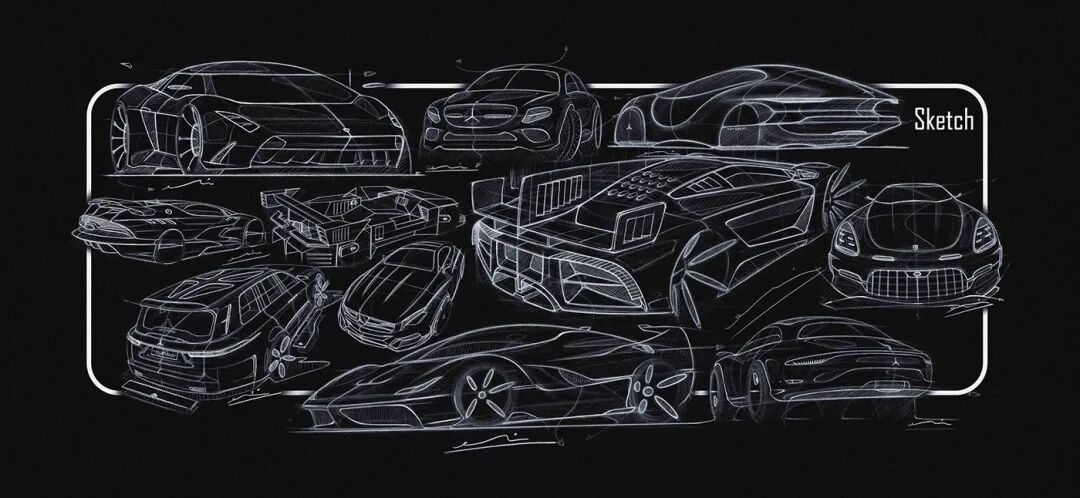 不管是手繪草圖還是成品渲染圖,質感都非常專業,車身曲面的透視、不同材質的光澤都拿捏得很到位,既能展現設計的藝術感,又能體現工業設計的嚴謹性。