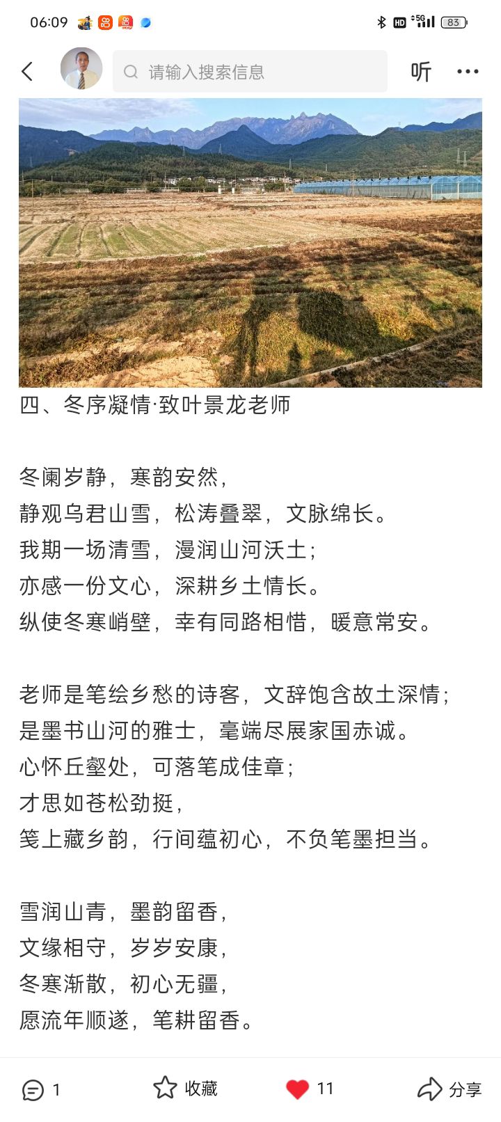 - 風(fēng)骨的具象化與普世性:詩人將抽象的“風(fēng)骨”具象化為烏君山的“嶙峋”、古松的“勁”、流泉的“動(dòng)”,讓讀者可感可知。而“何須紙上尋風(fēng)骨”的頓悟,則讓“風(fēng)骨”超越藝術(shù)領(lǐng)域,成為一種生活態(tài)度——它不在刻意的表現(xiàn)里,而在如青山般堅(jiān)守本真、剛健自在的精神中,引發(fā)對(duì)“何為風(fēng)骨”的普遍思考。