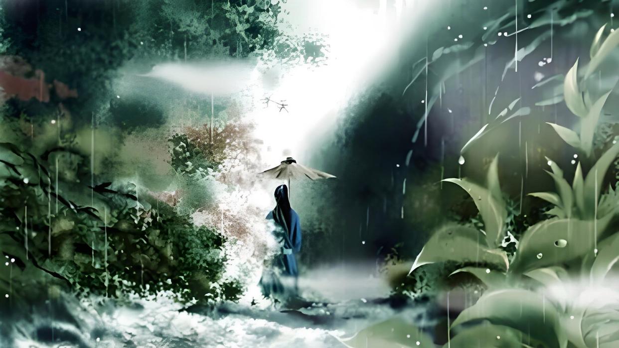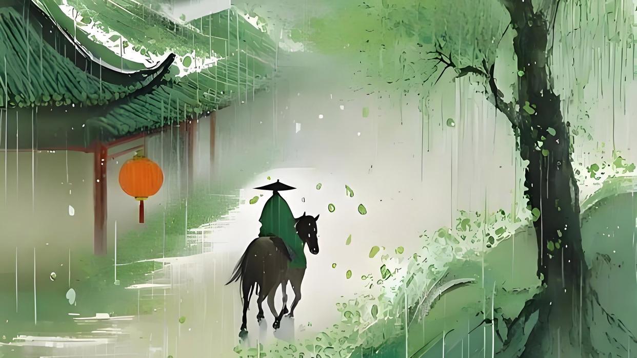 全曲開篇即描繪了雨夜的場景:“檐頭溜,窗外聲,直響到天明”,雨水從屋檐滴落,落在地面的聲音透過窗戶傳入作者的耳中,連綿不絕,整整下了一夜。