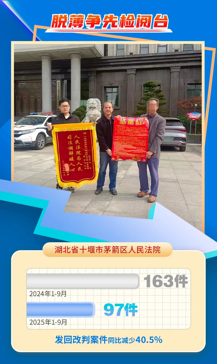 本期“脫薄爭先檢閱臺”走進湖北省十堰市茅箭區人民法院。自脫薄工作開展以來,茅箭區人民法院以刮骨療毒的勇氣和持之以恒的決心,喊出了脫薄向強的口號。踐行“如我在訴”,深化“判后答疑”,促推“案結事了”;探索構建“周提醒、旬督辦、月通報”督辦機制與“簡案快審、繁案精審”模式。“脫薄不是終點,而是新的起點。”茅箭區法院正以實干守護公平正義。