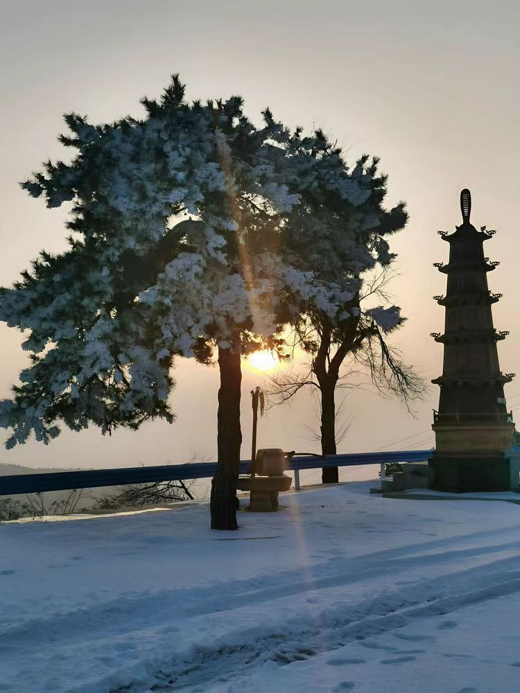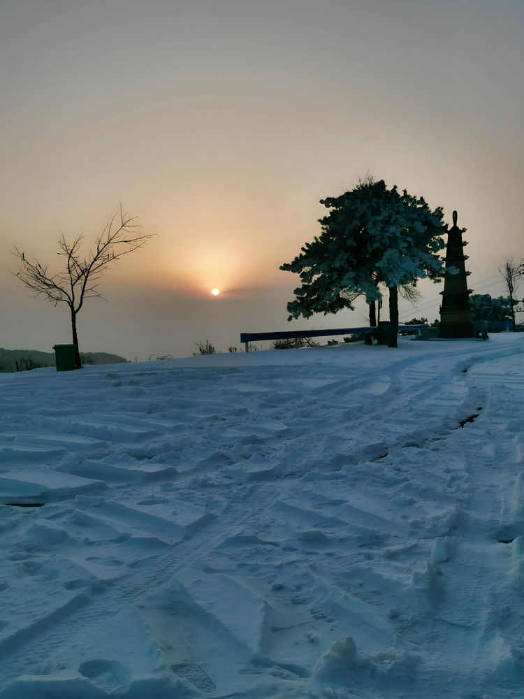 雪還在落,落在掌心便化了,只留一點微涼。日落時分往山巔更高處望去,云門寺的紅墻在雪霧里半隱半現(xiàn),腳下萬頃松濤翻涌著雪浪,疊嶂群山如伏獸靜臥,99間房舍的舊傳說與60間殿宇的新煙火,都被這場雪揉進(jìn)了韶山骨血。立于這雄踞之巔的雪色古寺中,忽然懂了何為“禪心似雪”——既有俯瞰山河的豪邁,亦有歸于清寧的淡然。世間萬般繁雜,終會被一場雪輕輕覆蓋,而心若如山上古松,任雪壓枝椏依舊蒼勁,便守得住一方清寧。山風(fēng)裹著雪沫掠過檐角,銅鈴脆響與誦經(jīng)聲交織,這兼具雄渾氣勢與清寂禪意的雪色云門寺,便成了最妥帖的心靈歸處。