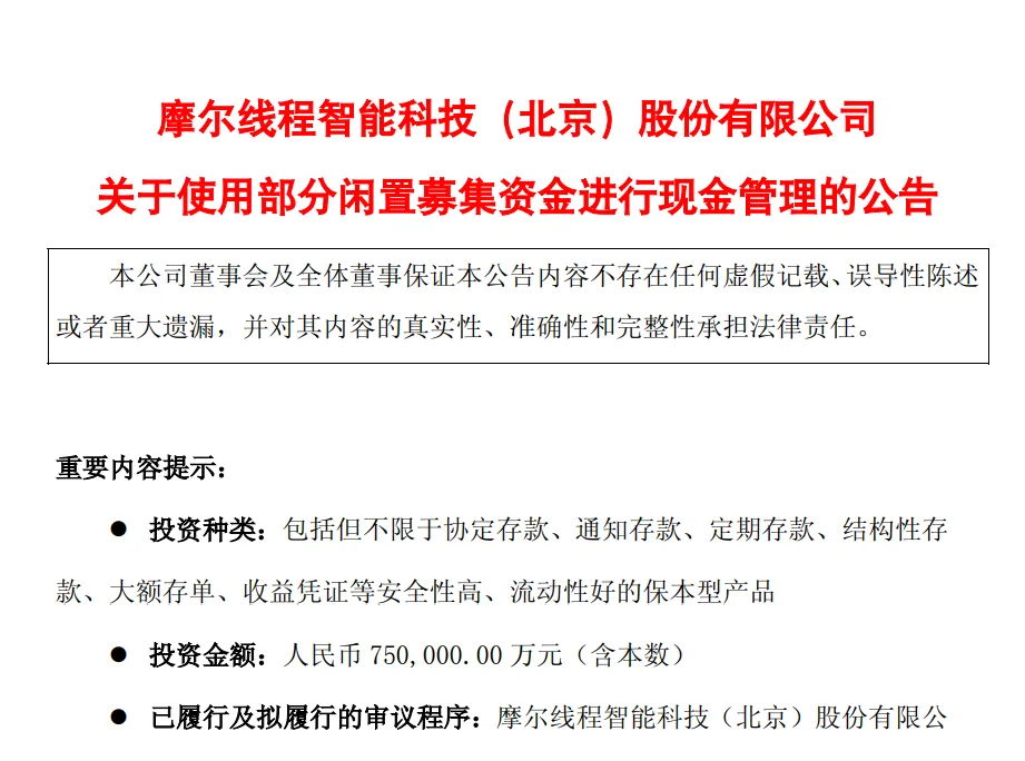 一是,買理財,誰不會買?還需要摩爾線程拿著自己的錢,再轉手去買理財嗎?大家炒股票,就是為了獲得更高的回報率,是希望摩爾線程,拿著這筆錢,去研發新技術,實現更大的技術突圍。