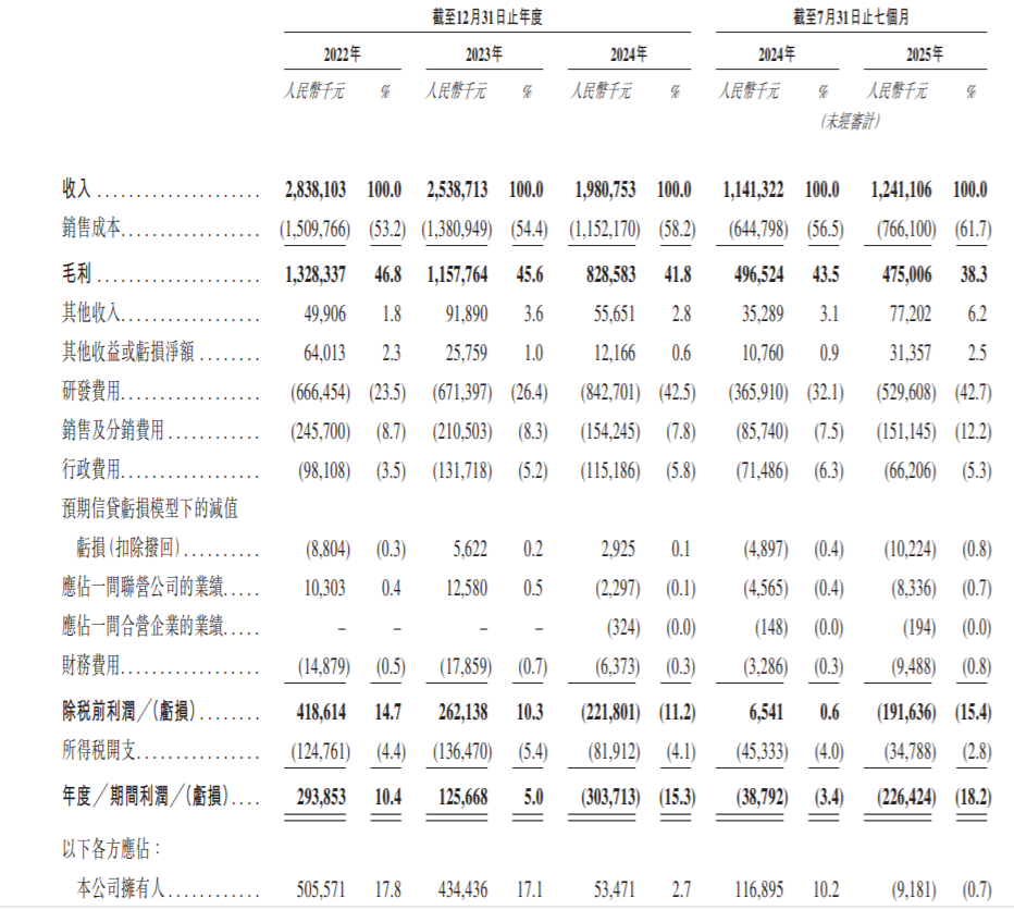 業績方面,2022年、2023年、2024年,石藥創新收入分別為28.38億元、25.39億元、19.81億元;毛利分別為13.28億元、11.58億元、8.29億元;期內利潤分別為2.94億元、1.26億元、-3.04億元,2024年轉虧。