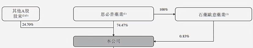 恩必普藥業由佳曦及石藥集團分別擁有45.94%及54.06%。佳曦由康日全資擁有,而康日由石藥集團全資擁有。