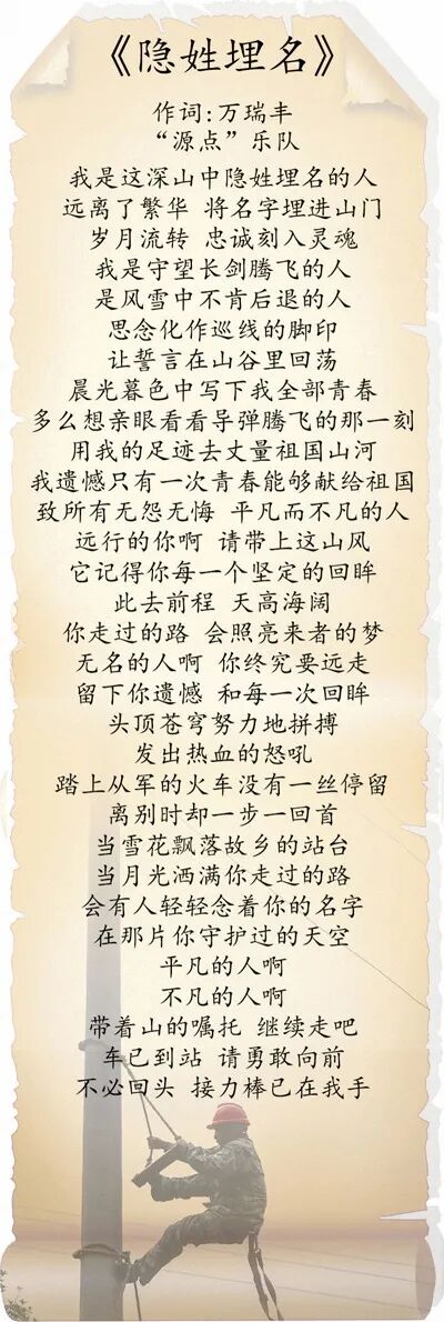 火箭軍某旅某營活躍著一支由基層官兵組成的“源點”樂隊。近日,他們以一級軍士長安軍偉為原型,創作了歌曲《隱姓埋名》,向即將退役的老兵致敬。安軍偉帶出的兵們也悄悄準備了一份來自深山的禮物,為扎根大山30年的老班長送行。
