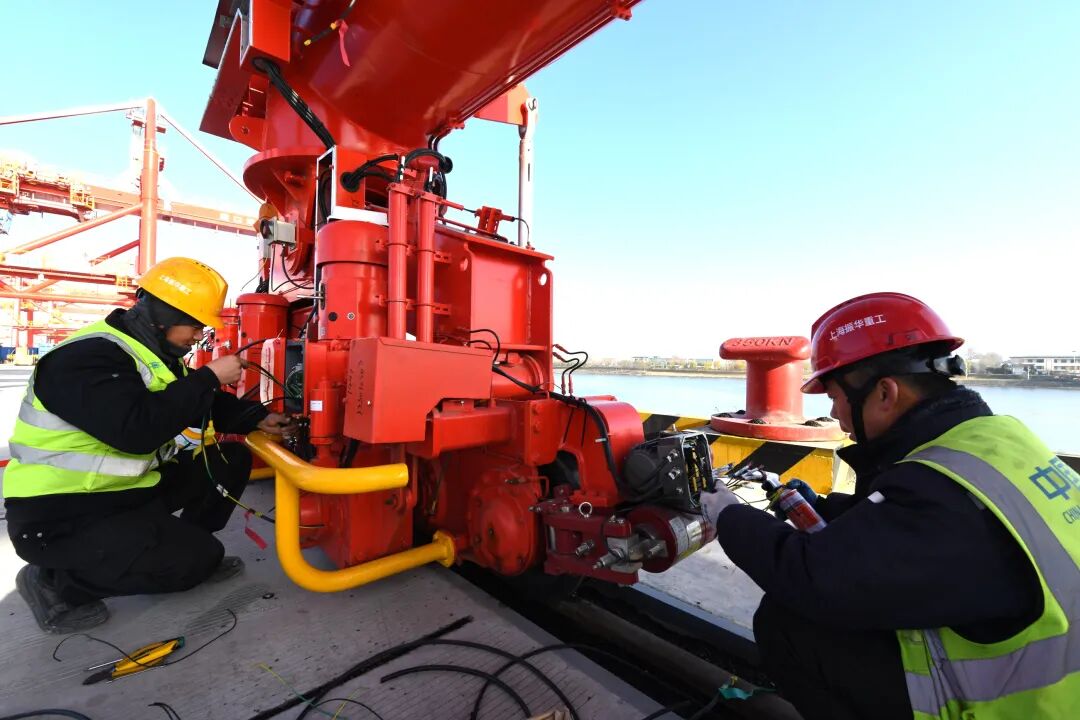 12月14日上午,上海振華重工(集團)股份有限公司的工作人員對周口港小集作業區(一期)安裝的自動化設備進行調試。
