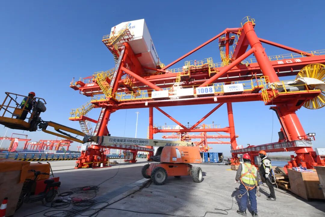 堆場自動化裝卸及運輸設備進行調試。