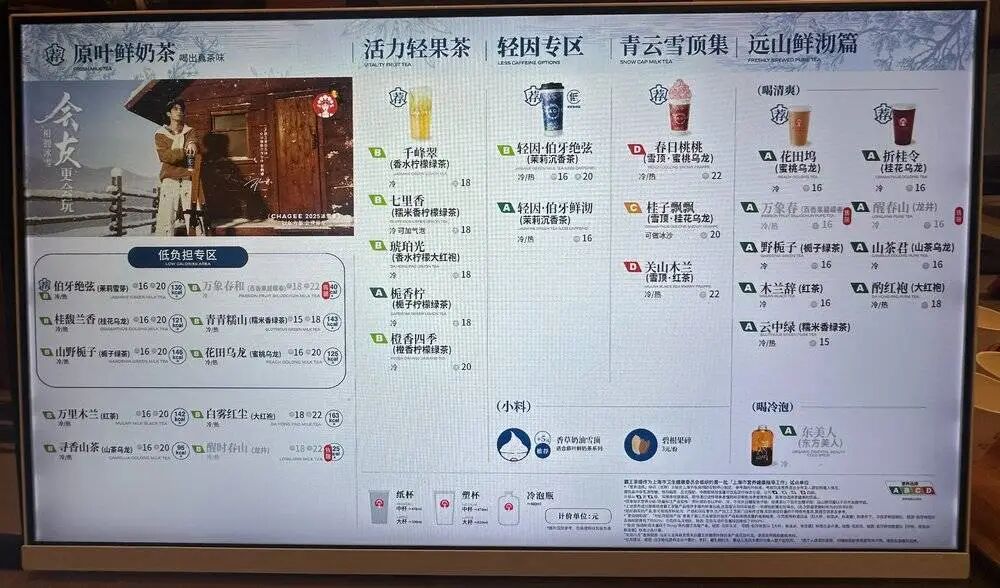 霸王茶姬加盟商利潤壓力的來源,一方面是行業(yè)整體的內卷,原本就卷的賽道2025年疊加了外賣大戰(zhàn)因素,喜茶、奈雪降價,古茗、茶百道貼身肉搏,價格戰(zhàn)成為常態(tài)。