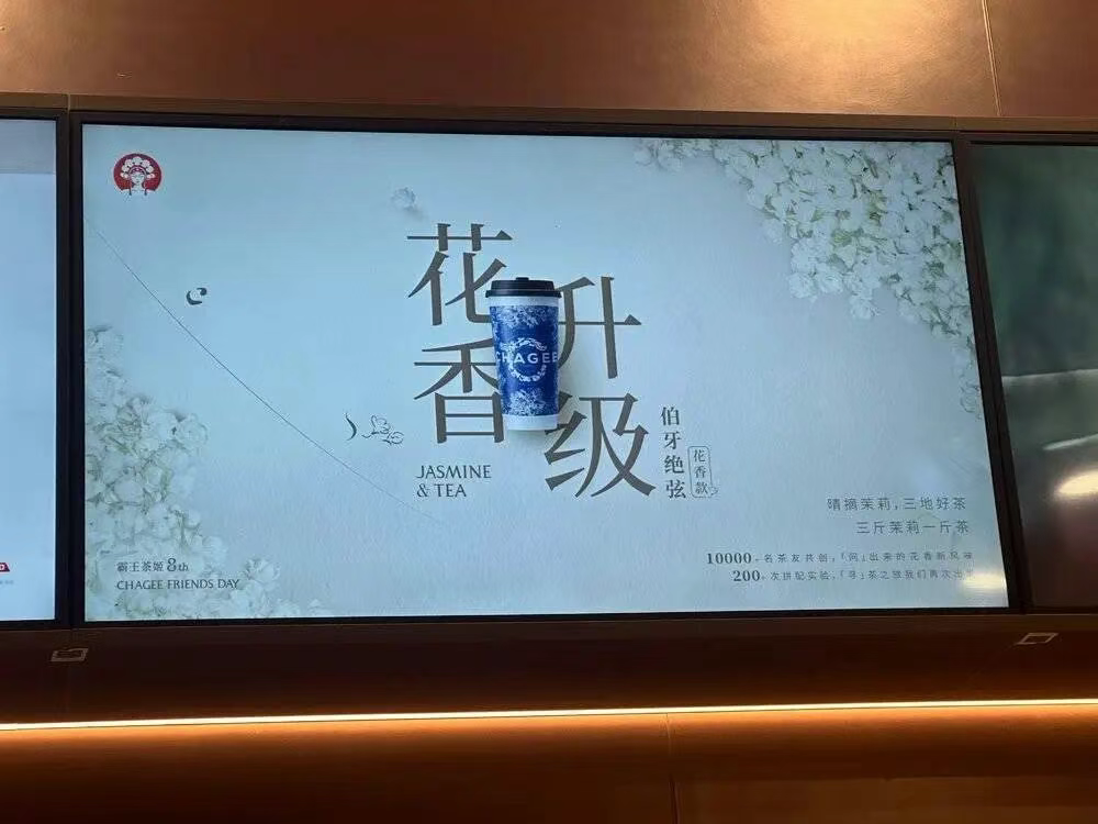 圖為霸王茶姬新品“伯牙絕弦”花香款電子屏展示
