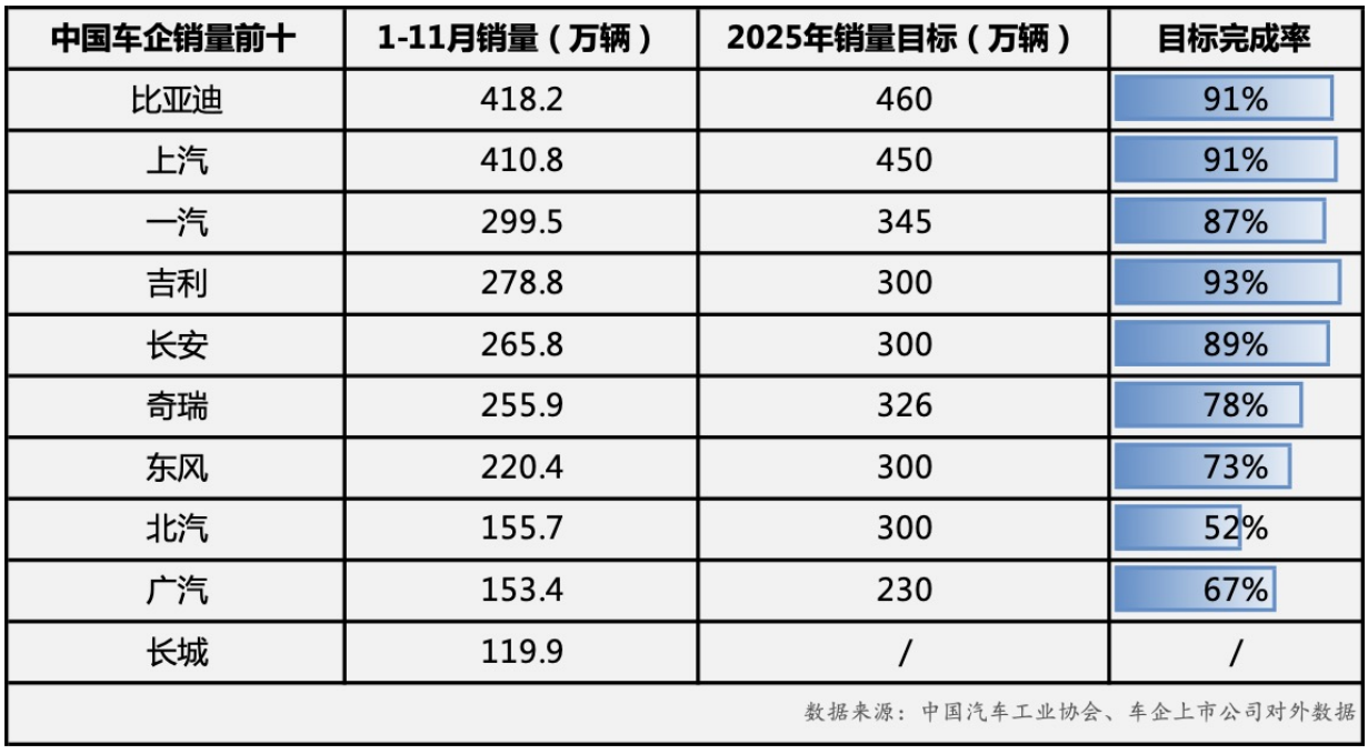 從累計數據看,2025年前11個月比亞迪累計銷量418.2萬輛,同比增長11.3%,年度銷量目標完成率超九成。隨著12月市場進入沖刺階段,比亞迪有望超額完成全年目標。