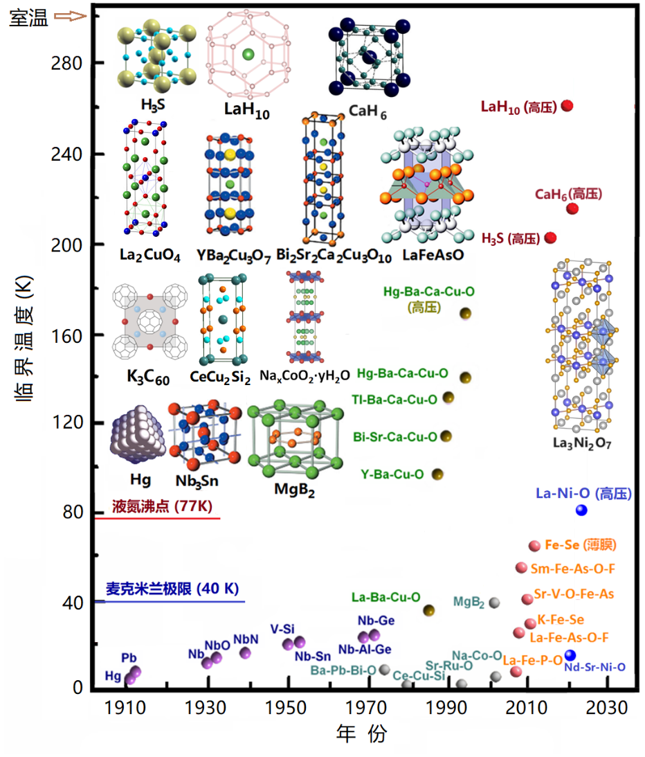 常見的超導材料體系,注意1980年代涌現的銅基、2006年后涌現的鐵基以及2023年后涌現的鎳基高溫超導材料