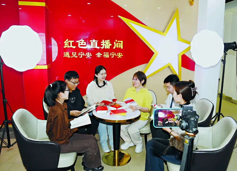石家莊市新華區寧安街道推動文明宣傳線上線下同步發力。圖為該街道黨群服務中心紅色直播間正在開展“云端推薦優秀圖書”活動。