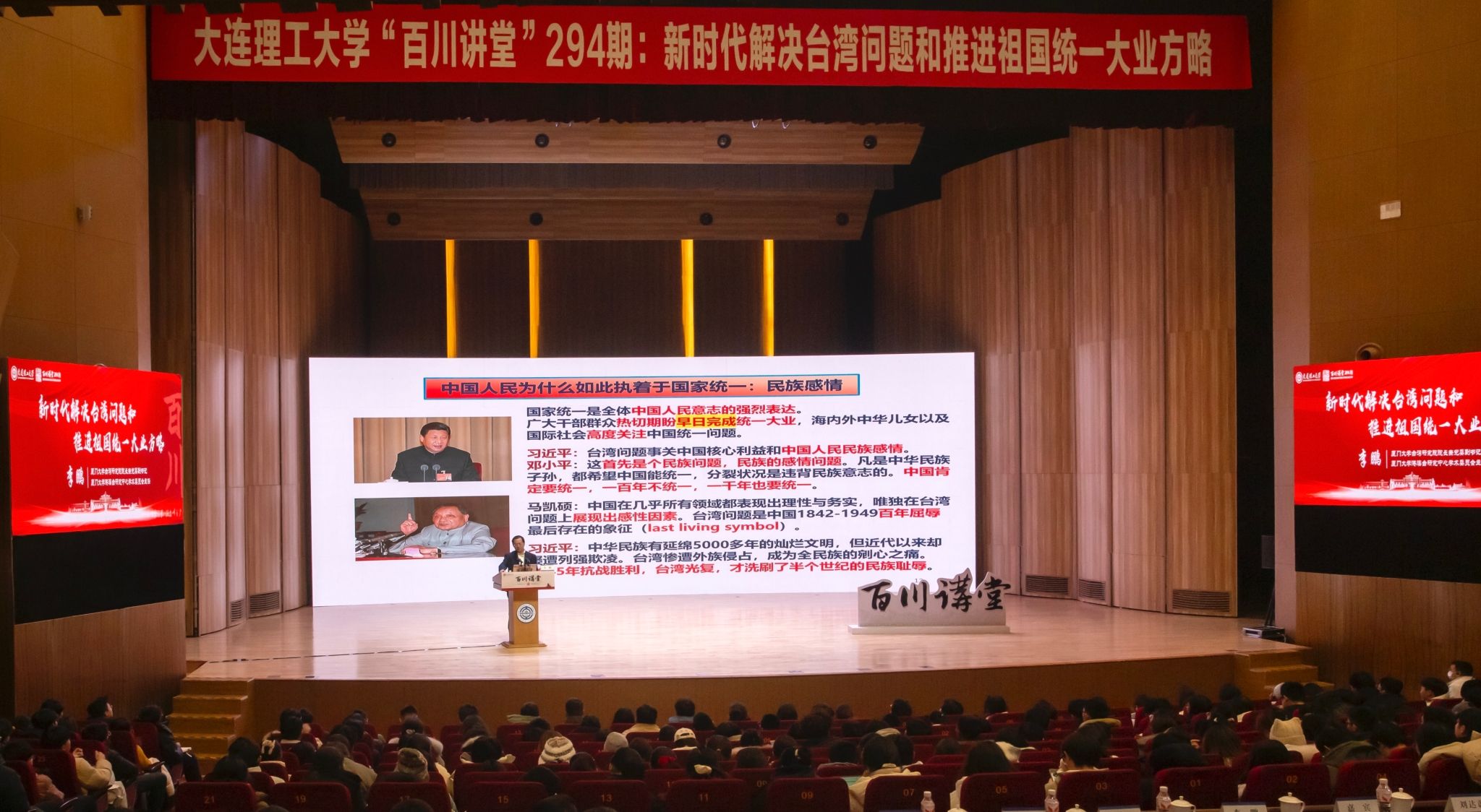 2025年是中國(guó)人民抗日戰(zhàn)爭(zhēng)暨世界反法西斯戰(zhàn)爭(zhēng)勝利80周年,也是臺(tái)灣光復(fù)80周年。12月3日,廈門大學(xué)臺(tái)灣研究院院長(zhǎng)兼黨委副書記、國(guó)家級(jí)“2011計(jì)劃”兩岸關(guān)系和平發(fā)展協(xié)同創(chuàng)新中心秘書長(zhǎng)、廈門大學(xué)港澳臺(tái)研究中心學(xué)術(shù)委員會(huì)主任李鵬教授做客我校“百川講堂”第294期,帶來(lái)主題為《新時(shí)代解決臺(tái)灣問題和推進(jìn)祖國(guó)統(tǒng)一大業(yè)方略》的講座。800余名凌水校區(qū)、開發(fā)區(qū)校區(qū)、盤錦校區(qū)師生以線上線下結(jié)合的方式聆聽講座。