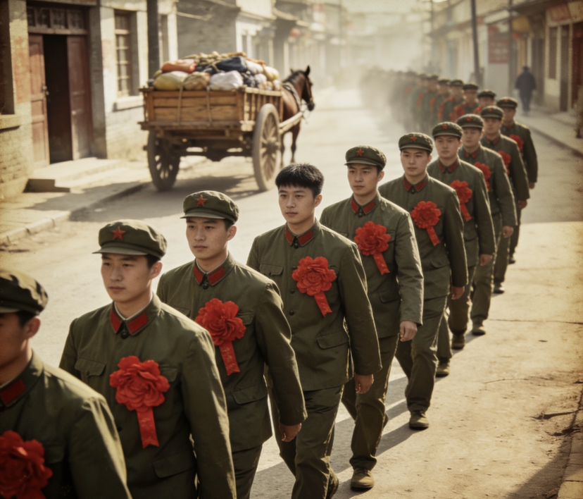 悶罐車里的日子,大多已模糊在記憶中。那是一群不滿二十歲的青年,青春飛揚、熱血澎湃,離愁似被憧憬沖淡,只剩下對未來的悸動與向往。一路艱辛,如今只似輕煙。唯記得第三天抵達綿陽,在接待站吃了一頓熱飯——如今女兒在那里工作定居,想起時心中總是溫熱。原本聽說目的地是成都,入川后卻繼續南下,首長最終宣布:我們將前往紅色之城遵義。軍營生活,便從此處開始。