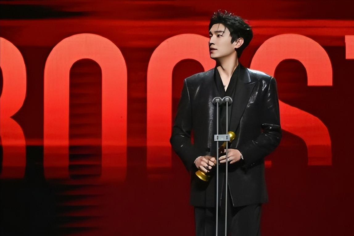 僅僅一個晚上,就斬獲三個獎項,會場中是他上臺下臺的的身影。