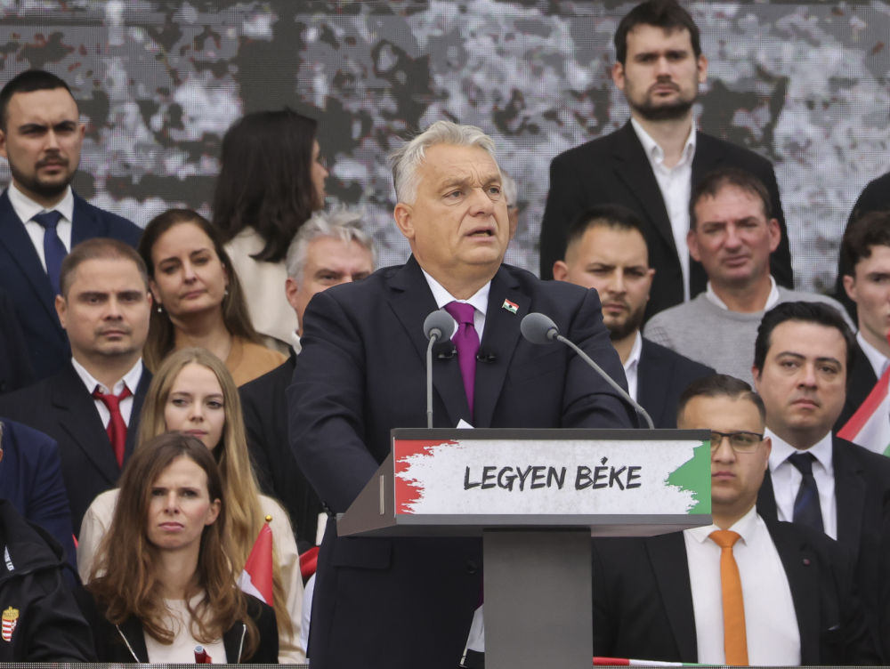 ??10月23日,匈牙利總理歐爾班在首都布達佩斯舉行的一場集會上講話。新華社發(弗爾季·奧蒂洛攝)