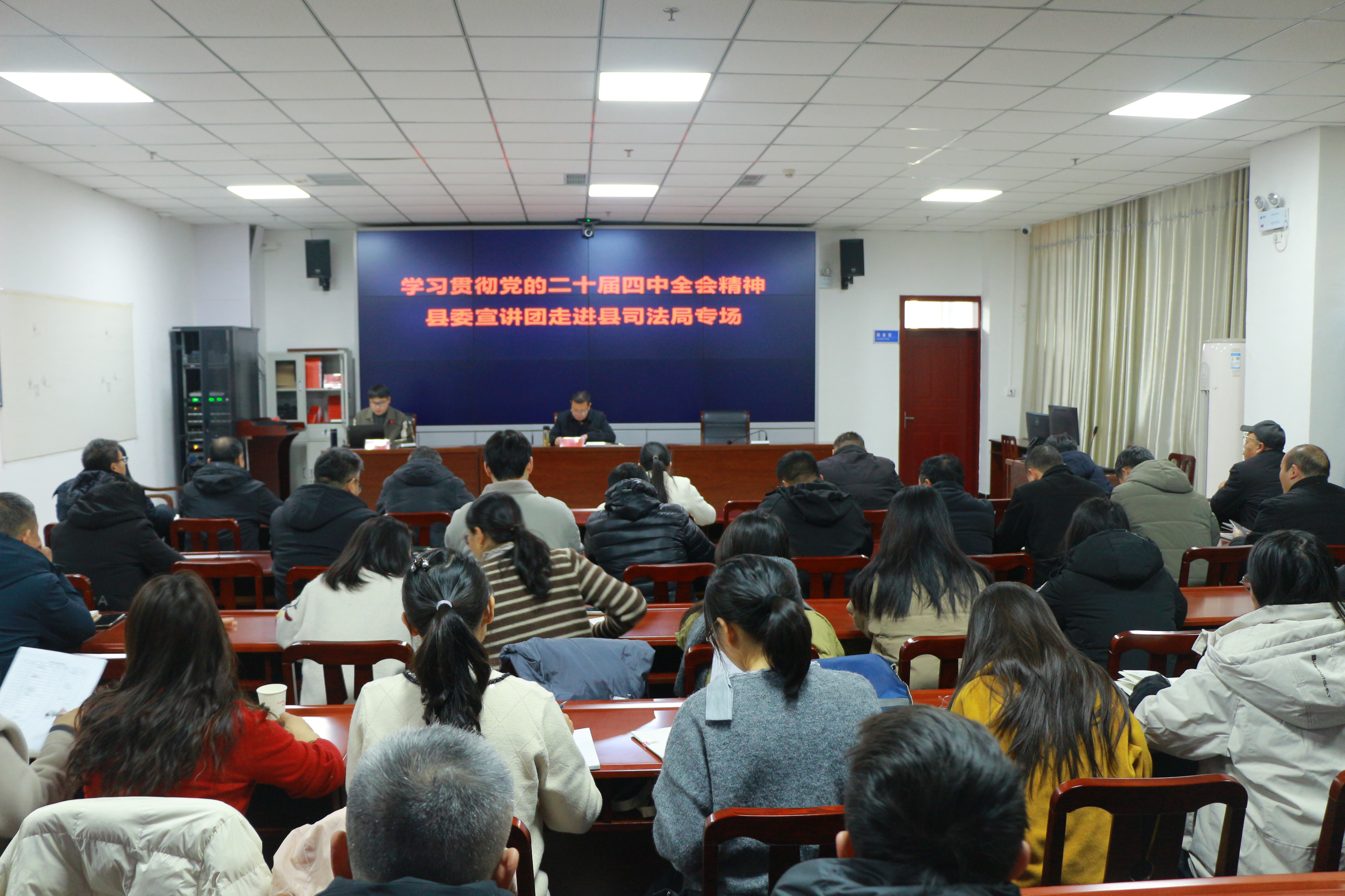 為深入學(xué)習(xí)貫徹黨的二十屆四中全會(huì)精神,切實(shí)把全體司法行政干部職工的思想和行動(dòng)統(tǒng)一到全會(huì)決策部署上來(lái),12月15日,內(nèi)黃縣司法局組織開(kāi)展黨的二十屆四中全會(huì)精神專題宣講。專題宣講特別邀請(qǐng)內(nèi)黃縣委宣講團(tuán)成員、黨校講師耿瑞璞同志作專題輔導(dǎo),局機(jī)關(guān)、局屬單位、司法所全體在編人員參加本次宣講會(huì)。?