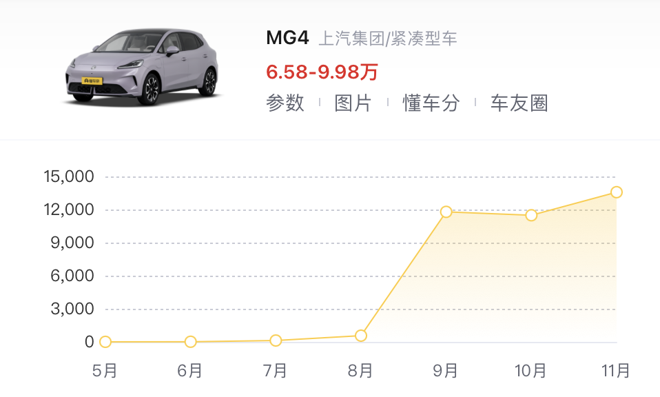 在MG4的帶動下,MG品牌整體銷量實(shí)現(xiàn)不錯的上漲。