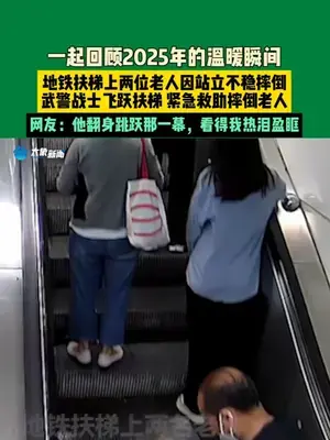 一起回顧2025年的溫暖瞬間,地鐵扶梯上兩位老人因站立不穩(wěn)摔倒,武警戰(zhàn)士飛躍扶梯,緊急救助摔倒老人。網(wǎng)友:他翻身跳躍那一幕,看得我熱淚盈眶。