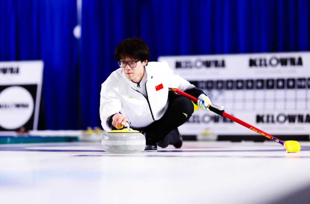 于森在比賽中。圖片來自世界冰壺聯合會網站