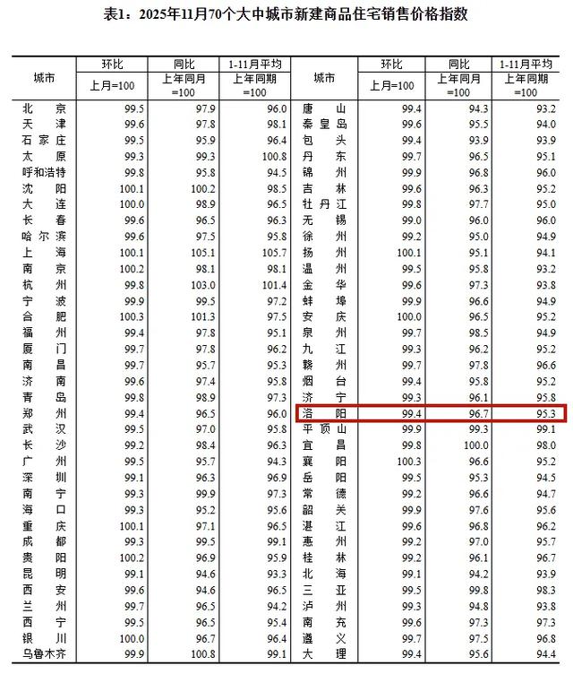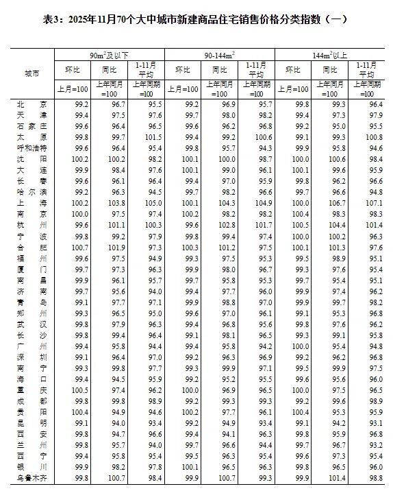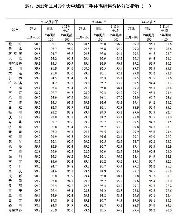 12月15日,據國家統計局消息,2025年11月份,70個大中城市商品住宅銷售價格環比總體下降、同比降幅擴大。