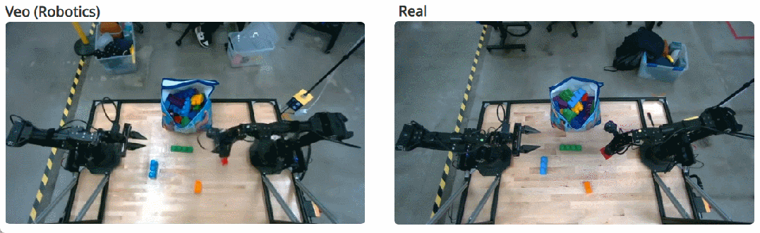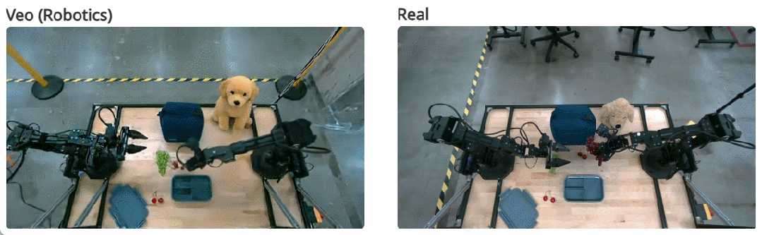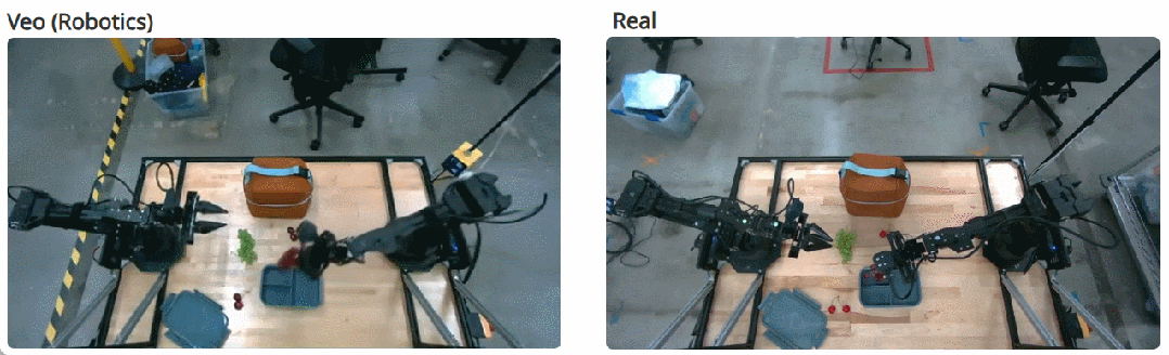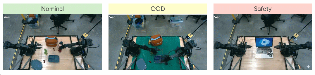 在基于 Gemini Robotics On-Device(GROD)模型訓練了端到端的 VLA 策略。隨后,使用經過微調的 Veo(Robotics)視頻模型,在分布內場景中對這些策略進行評估。