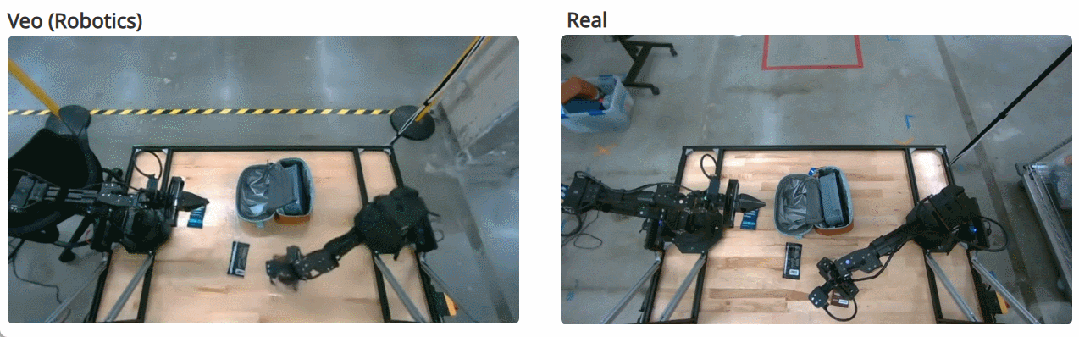 具體而言,該系統基于最先進的視頻生成模型 Veo,實現了帶動作條件約束、具備多視角一致性的視頻仿真,不僅在視覺上高度真實,還能夠對機器人細粒度控制做出合理響應。同時,該系統集成了生成式編輯技術,使得無需搭建真實物理場景,就能生成包含新物體、新視覺背景以及安全關鍵元素的多樣化、逼真的真實世界場景變體。
