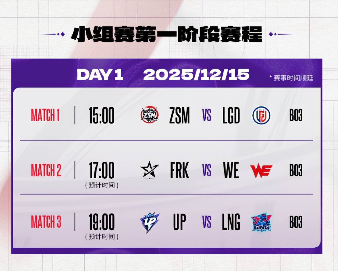 12月15日的比賽,由主播隊ZSM對陣LGD,主播隊FRK對陣WE,以及UP對陣LNG。誰會笑到最后,讓我們拭目以待。