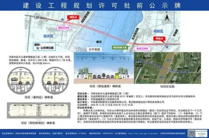 在濟(jì)南航天大道黃河隧道(I期)工程順利掘進(jìn)的同時(shí),12月12日,濟(jì)南市自然資源和規(guī)劃局網(wǎng)站對(duì)該項(xiàng)目建設(shè)工程規(guī)劃許可批前公示,工程全長約3.888公里,其中隧道長約3.728公里。