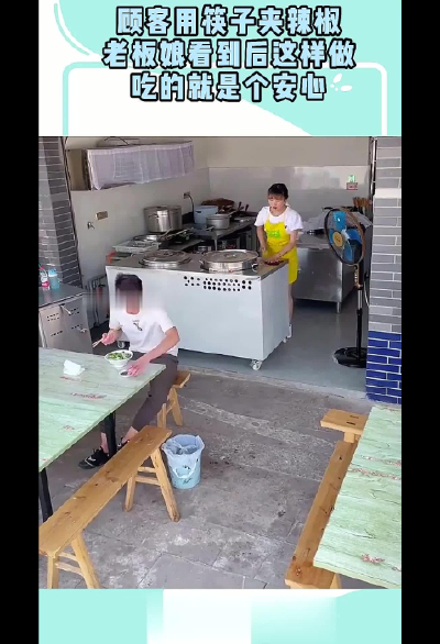 顧客用筷子夾辣椒,老板娘看到后這樣做,吃的就是個安心!