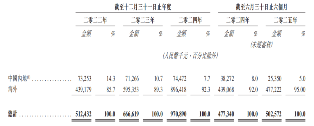 截至2025年6月底,中堅(jiān)科技的產(chǎn)品已銷往歐洲、美洲、亞洲、大洋洲及非洲,覆蓋全球超50個(gè)國(guó)家和地區(qū)。2025年上半年,公司來(lái)自中國(guó)內(nèi)地的收入僅占5%,其余均來(lái)自海外市場(chǎng)。
