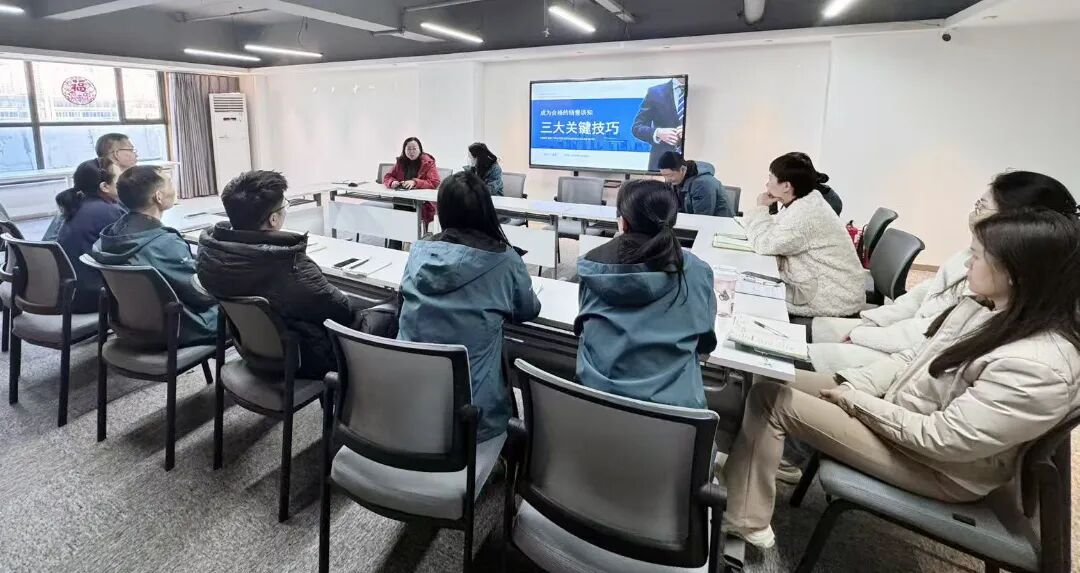 培訓中,武燕結合多年一線營銷經驗,系統講解了高效溝通的話術、客戶需求要點及關系維護的實用方法,強調“傾聽先行、價值導向”的服務理念;趙銀萍則立足教育行業客戶特點,圍繞陌生拜訪場景,細致拆解了從前期準備、破冰切入到需求挖掘、后續跟進的全流程技巧,并分享了多個真實案例中的應對策略與復盤心得。