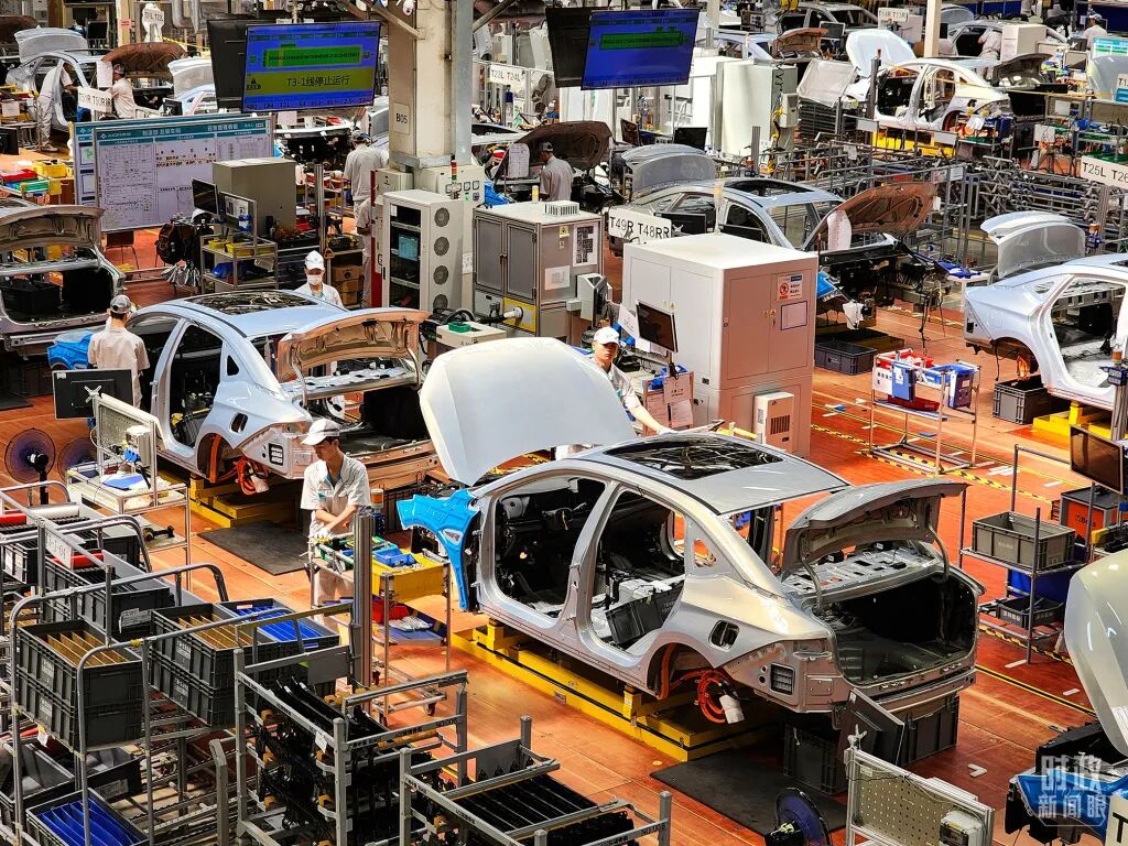 國內一家車企制造車間的新能源汽車生產線。(圖/視覺中國)