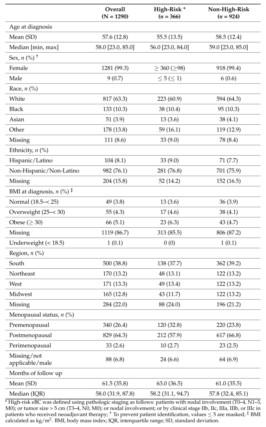 [2]Mahtani R,et al. Human Epidermal Growth Factor Receptor 2-Positive (HER2+) Early Breast Cancer Treatment and Outcomes by Risk of Recurrence: A Retrospective US Electronic Health Records Study. Cancers (Basel). 2025 May 31;17(11):1848.