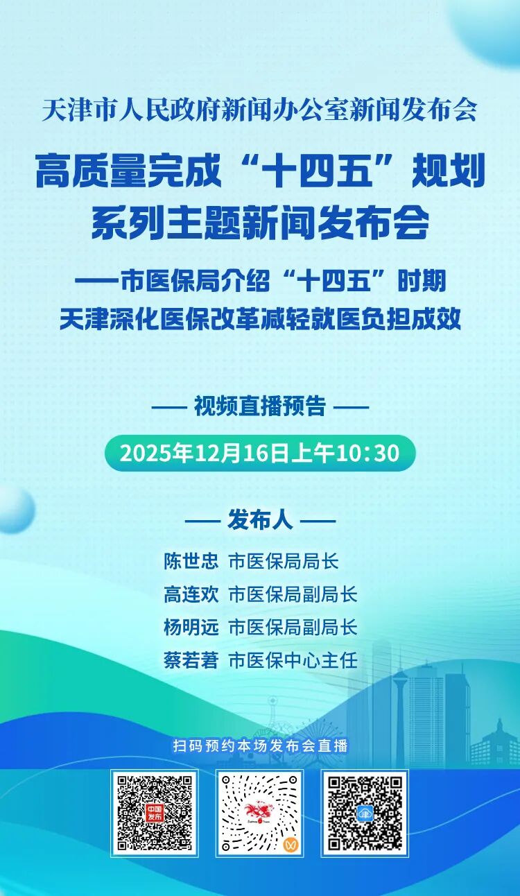 明天上午直播!市醫(yī)保局介紹“十四五”時(shí)期天津深化醫(yī)保改革減輕就醫(yī)負(fù)擔(dān)成效