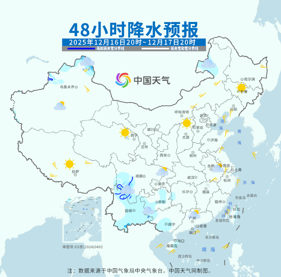 而南方部分地區將迎來弱降水過程。預計16日至19日,云南、貴州至華南等地將自西向東出現小雨或陣雨,南方的小伙伴們出門要記得帶傘。19日之后,隨著南支槽東移發展,而且北方有冷空氣南下,降水范圍將會擴大,大家要密切關注臨近天氣預報預警信息。