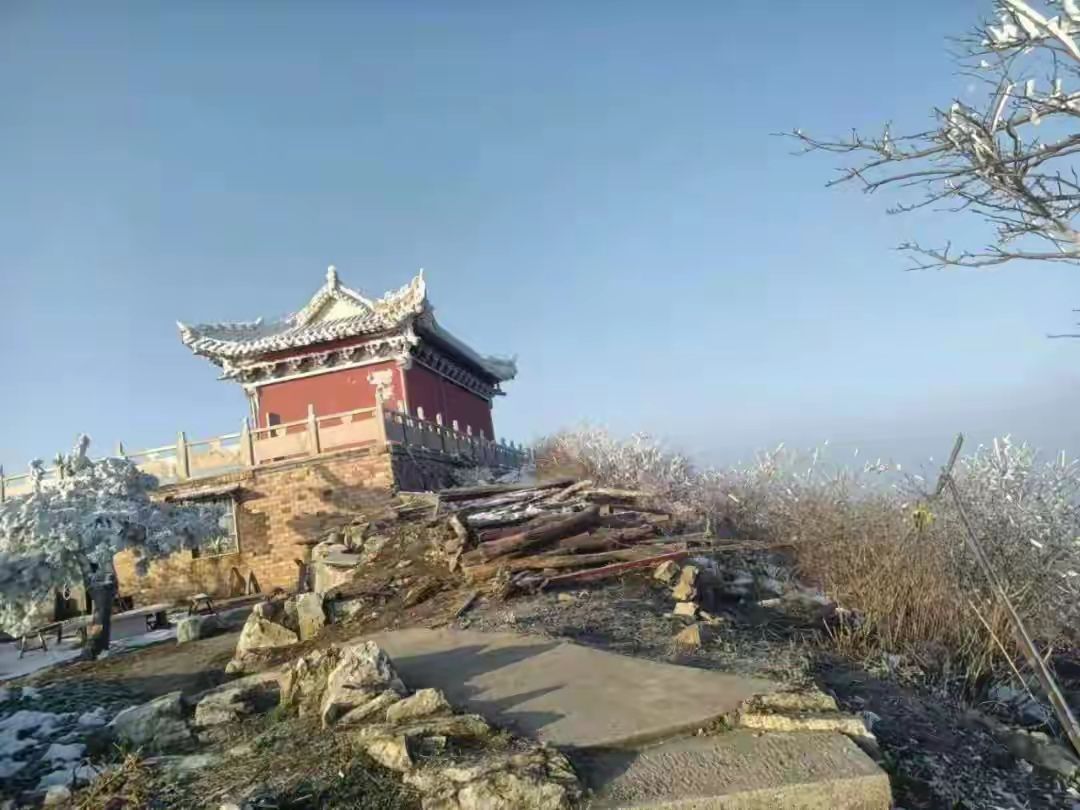 佇立白茂垛之巔,玉皇頂古廟的斑駁墻垣在日光下泛著古樸光澤,檐角殘雪簌簌欲落,與蒼茫山色相融。此地曾流傳千年的祈雨傳說,清《泌陽縣志》早有記載,白茂垛山后藏著一汪龍潭,直通東海龍宮,山上住著白茅大仙。舊時每逢大旱,方圓百里的鄉親都會跋山涉水而來,在山頂的祖師廟焚香祈雨,且次次靈驗。也正因這白茅大仙的傳說,白茂垛才有了“白云山”這個溫潤的別稱,古廟香火綿延數百年,藏著一方百姓對風調雨順的殷殷期盼。