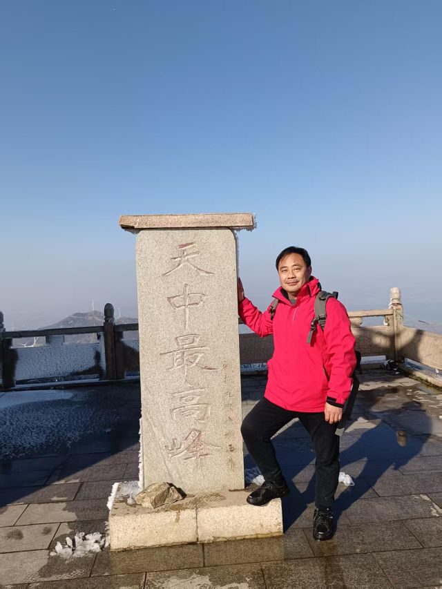2025年12月13日,天朗氣清。前夜小雪初霽,平野殘雪消融殆盡,唯余濕痕淺淺。應衛東之邀,我與同伴廖冬梅欣然赴泌陽,欲登駐馬店第一高峰——白云山主峰白茂垛。