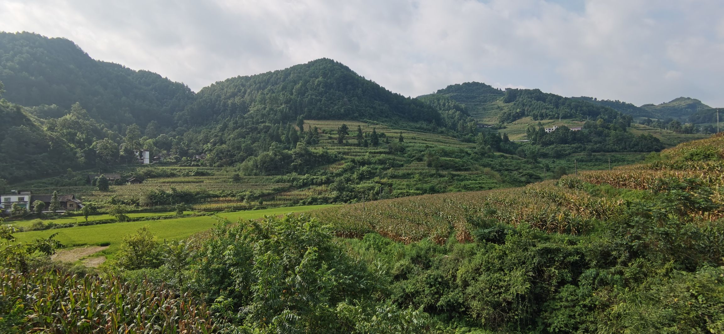 玉米地連成一片,都看不到邊,也有果樹蔬菜生長在房前屋后。房屋左右,住宅附近,巷子里外,空間都較為寬闊,面積都不小。