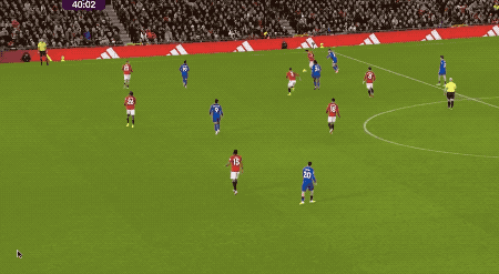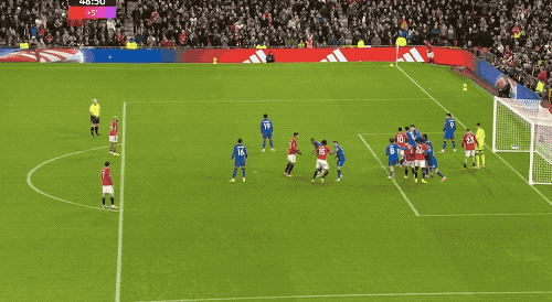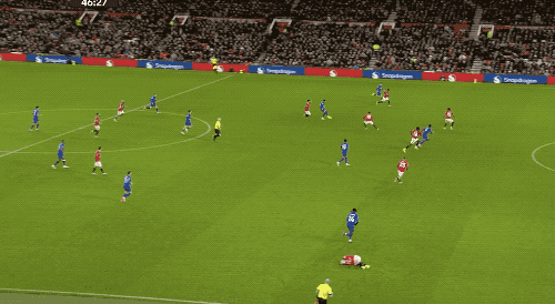 上半場補時階段,曼聯獲得角球,B費將球開出,約羅做了一個完美的擋拆,卡塞米羅后點頭球破門。