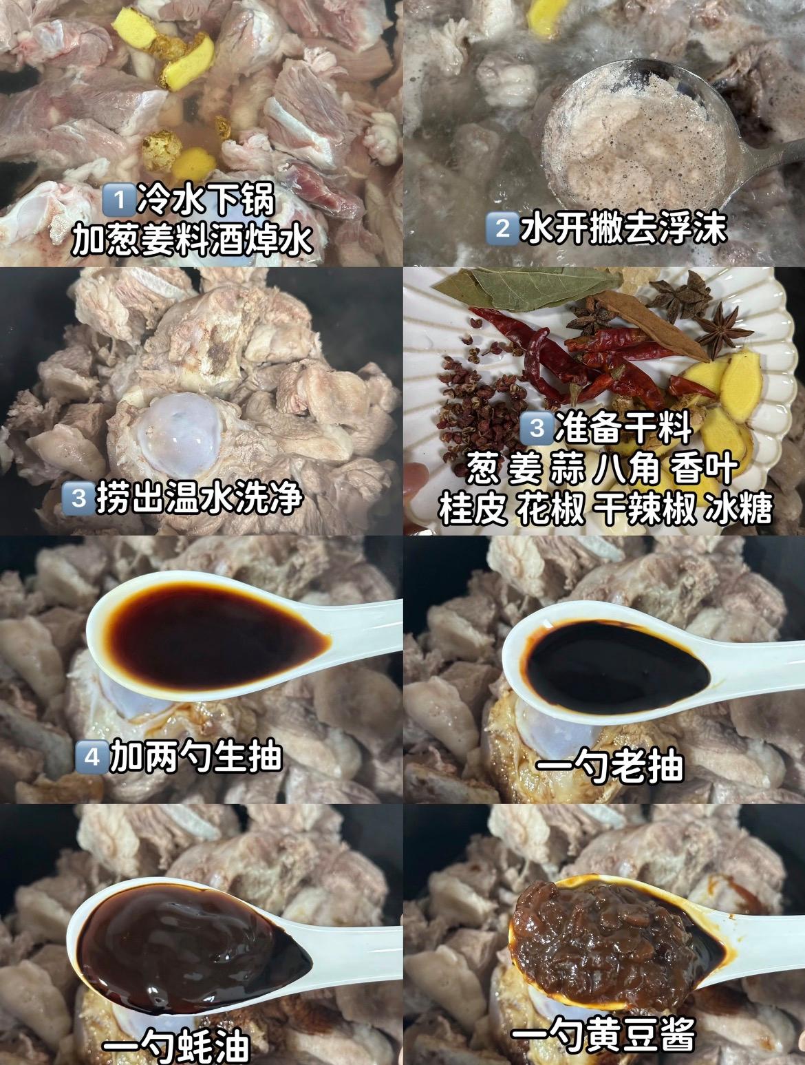 燜煮調料:柱侯醬1勺(可換黃豆醬)、蠔油1勺、生抽1勺、米酒或料酒2勺、砂糖和鹽各少許、開水1.5碗