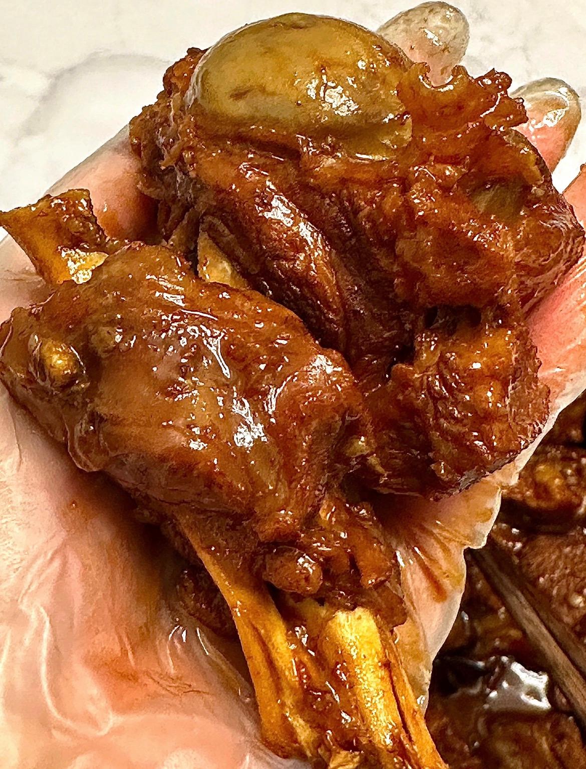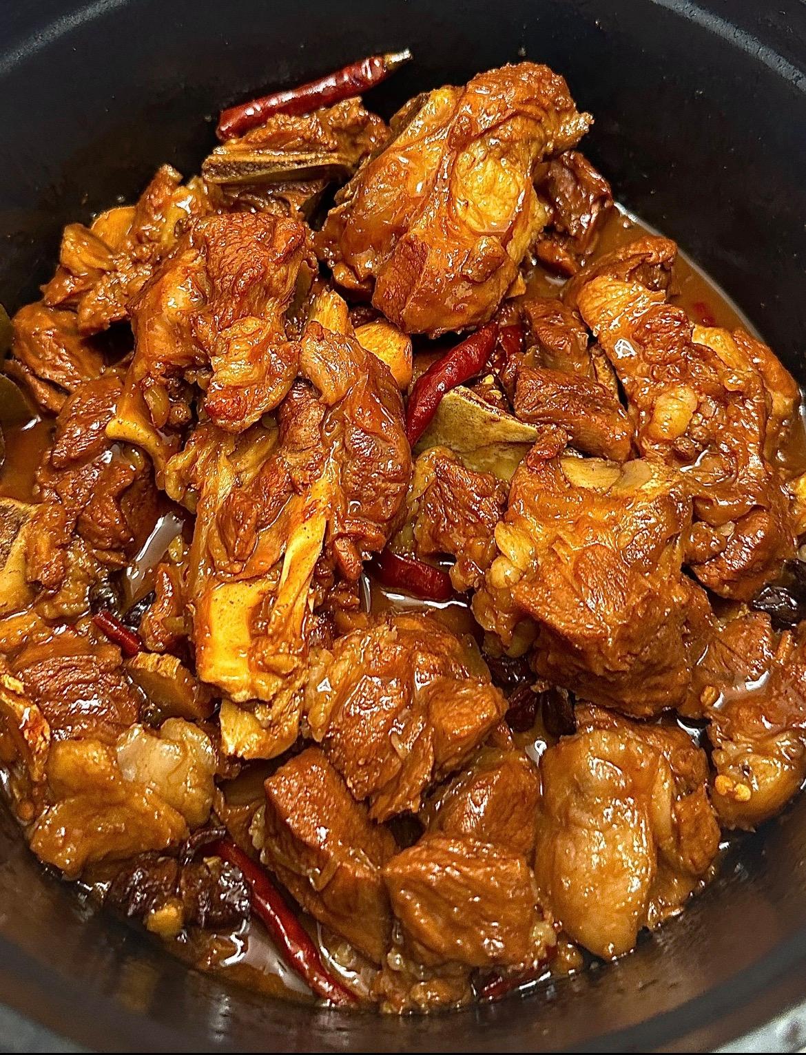 4、大火燒開后,轉小火,蓋上鍋蓋慢燉約1小時(或用高壓鍋壓20-25分鐘)。燉至軟爛后,開大火收濃湯汁,即可盛出。