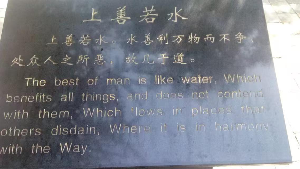 沿著青石板路前行,腳下的石階旁、路旁的燈桿上、休憩的亭榭內,也處處可見《道德經》的節選文字,或娟秀或雄渾的字跡,將這座雄關暈染得滿是書香雅韻,游人們輕聲吟誦著充滿哲思的文字,感受傳統文化的熏陶。