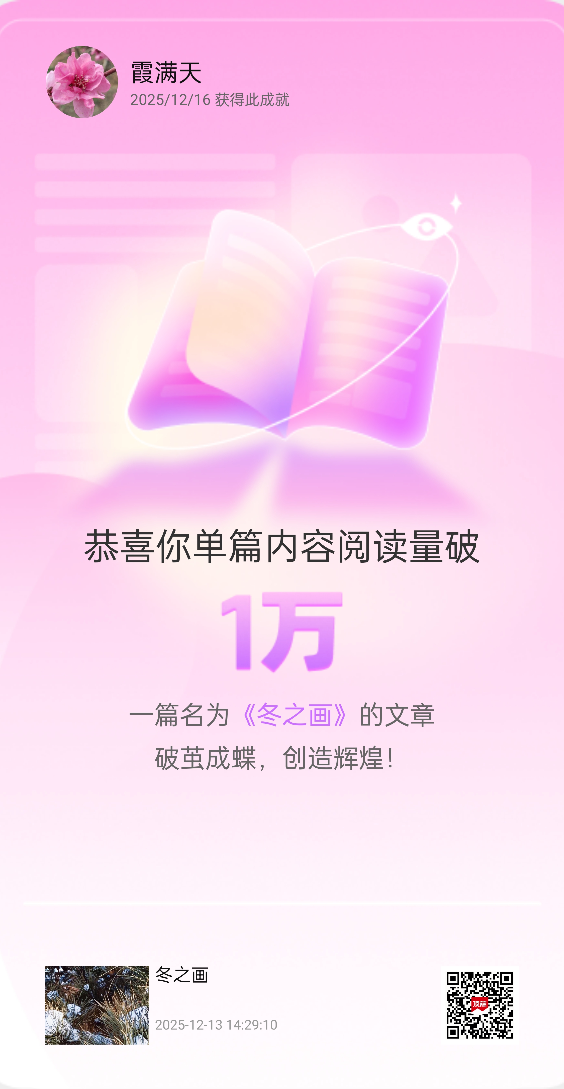 我的作品《2025年的第一場(chǎng)雪》在頂端的單篇閱讀量超過1萬了