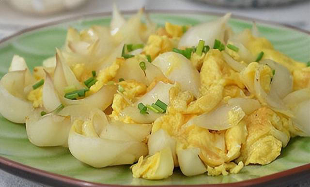 所需食材:鮮百合200克、雞蛋3個、大蔥1段、鹽適量、食用油適量、料酒少許。