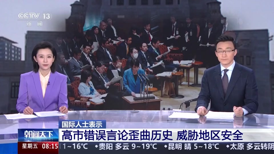 國際人士表示:高市錯誤言論歪曲歷史 威脅地區(qū)安全