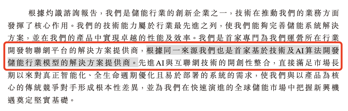 根據灼識諮詢,果下科技為業內較早實現儲能系統解決方案及/或產品的互聯網云端整合及開發數字化能源管理全景互聯網云平臺 的參與者之一。同時,公司也是首家基于技術及AI算法開發儲能行業模型的解決方案提供商。